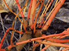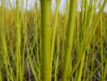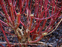 Picture on left shows the new basal growth on C. sanguineum Magic Flame, whilst on the right, the best red – Cornus alba ‘Sibirica' - is an abundance of cane-like stems throughout the winter.