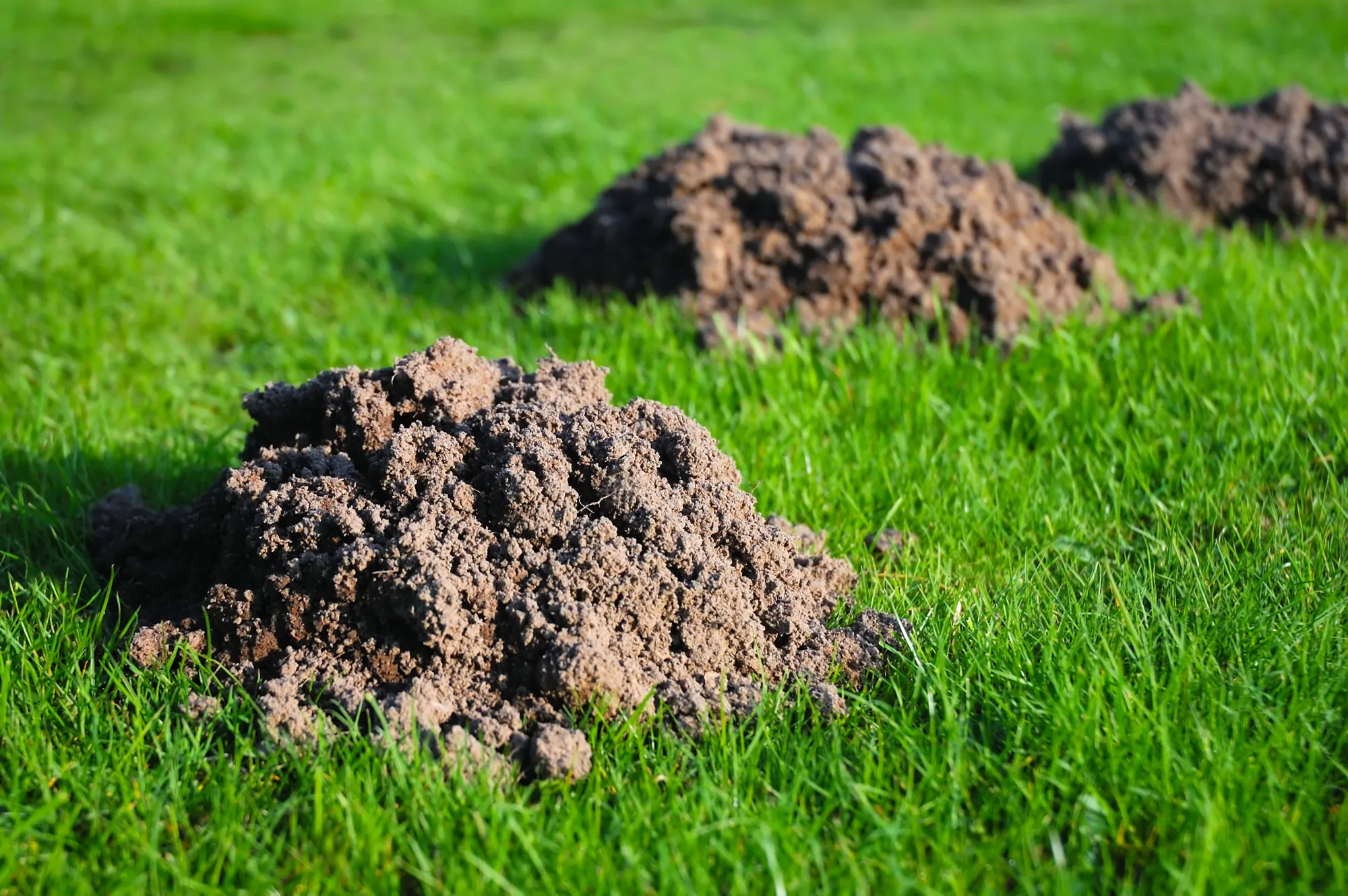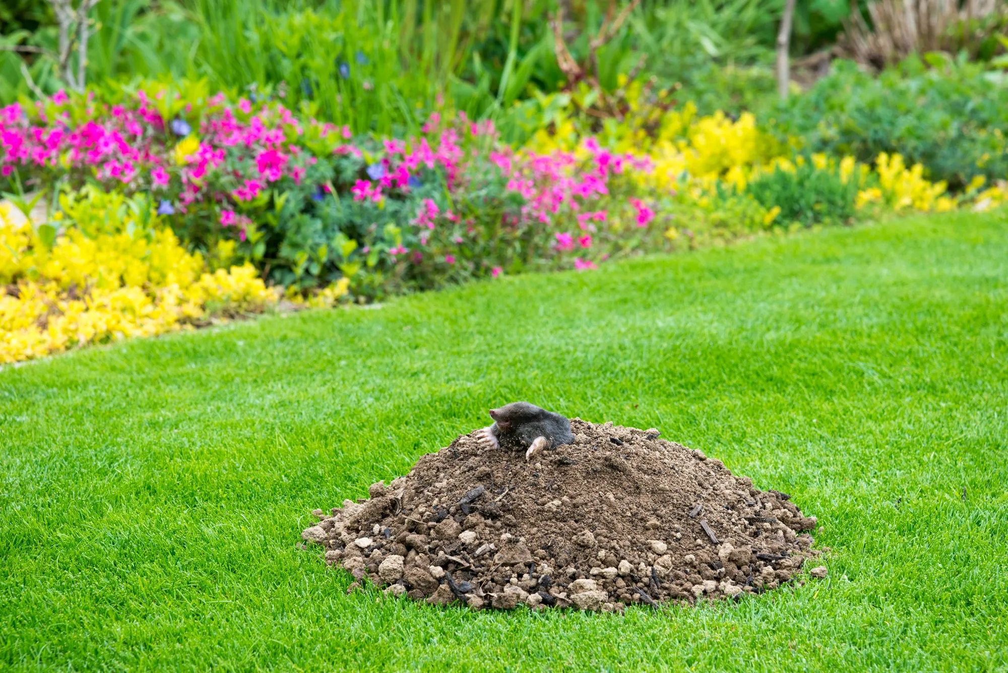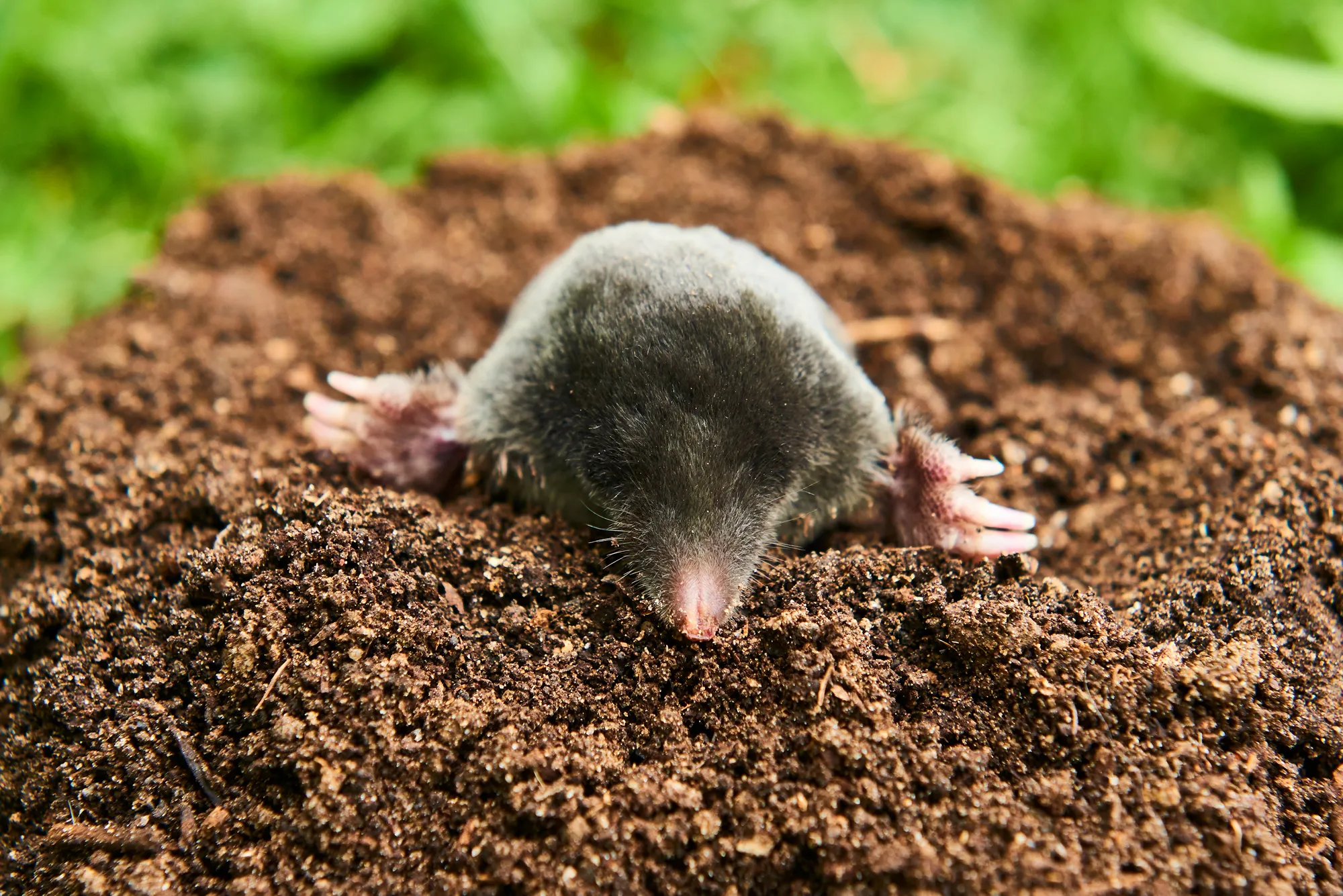 Close up of Mole in garden. Talpa europaea, crawling out of brown molehill, green grass lawn background. Moles are one of the most frustrating of all garden and lawn pests! They are rarely seen, but can cause absolute mayhem. The damage they do to plants is minimal, but if you are unfortunate enough to have moles in your garden, they will cause you more angst than an infestation of aphids! The main problem being, that they are so difficult to get rid of, and you normally see the damage they do, before you realize that you have a mole or so!